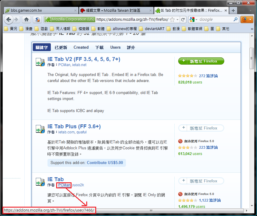 看來現在先不要安裝ie tab。以下圖片作者比對。好奇addons.mozilla.org,為何可以創立一模一樣暱稱?