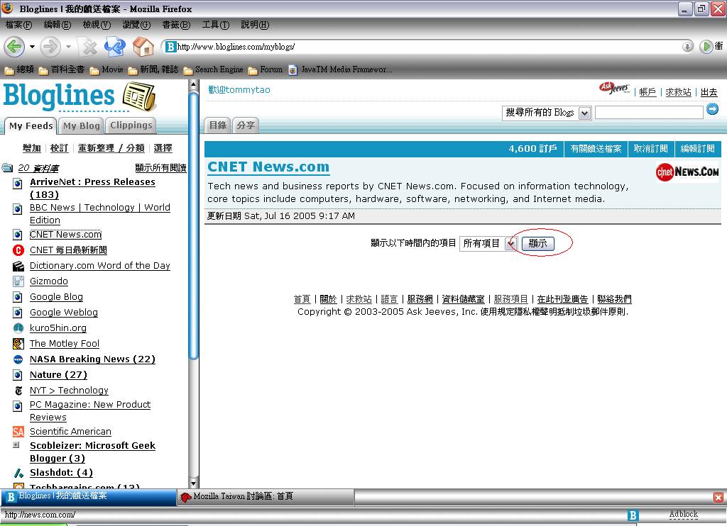 這好像應該去問Bloglines..