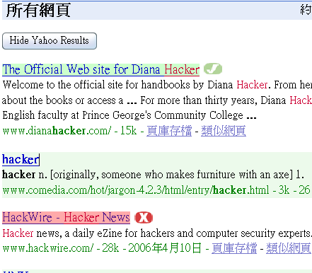 安裝後,使用 GOOGLE 或 YAHOO 搜尋的結果