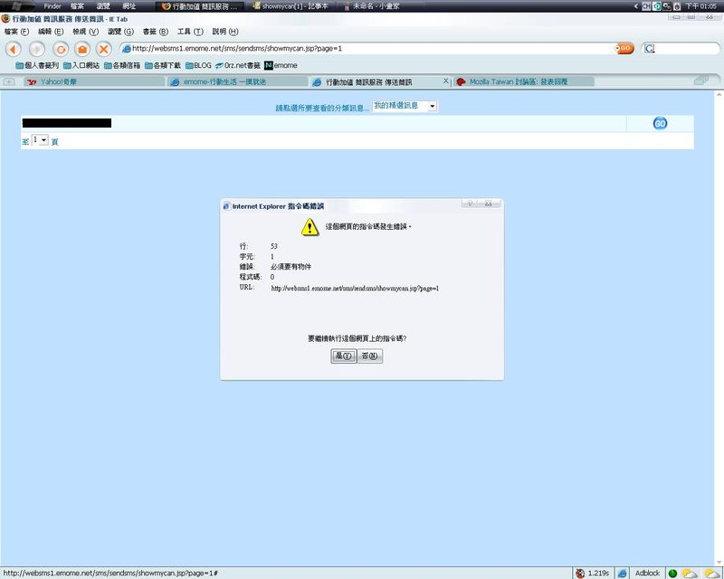 之前有問過在emome傳送簡訊頁面裡面會有動作很慢的狀況