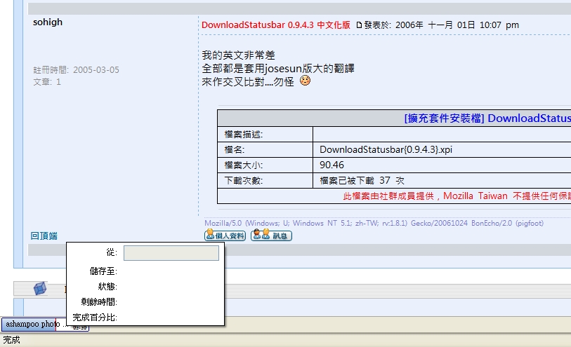 Mozilla/5.0 (Windows; U; Windows NT 5.1; zh-TW; rv:1.8.1) Gecko/20061024 BonEcho/2.0 (pigfoot)