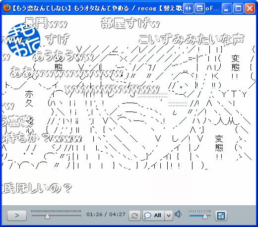 圖一 於瀏覽器中可見動畫的底端有一行歌詞「キモヲタを嫌う君の」