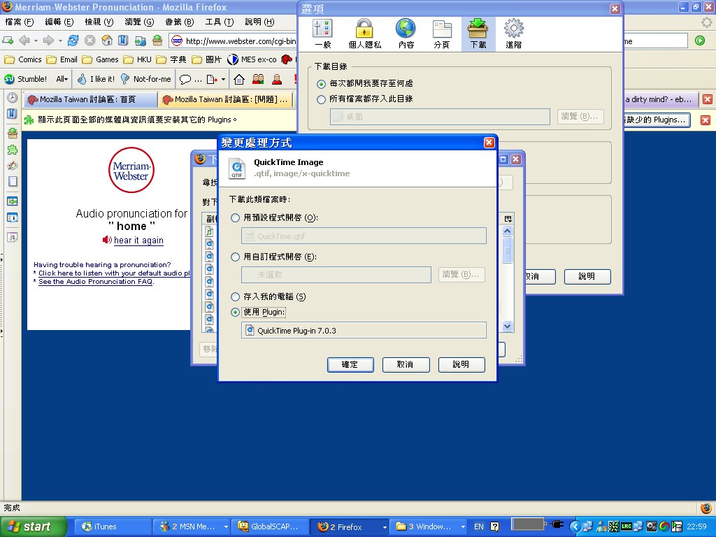 當我在網頁中有任何wav 檔, mov 檔等等,它都彈出要我安裝plug-in 呢!但我已安裝過了嘛!~~~ 現時的方法是用ie tab 或用ie 開我需要看mov 地方。