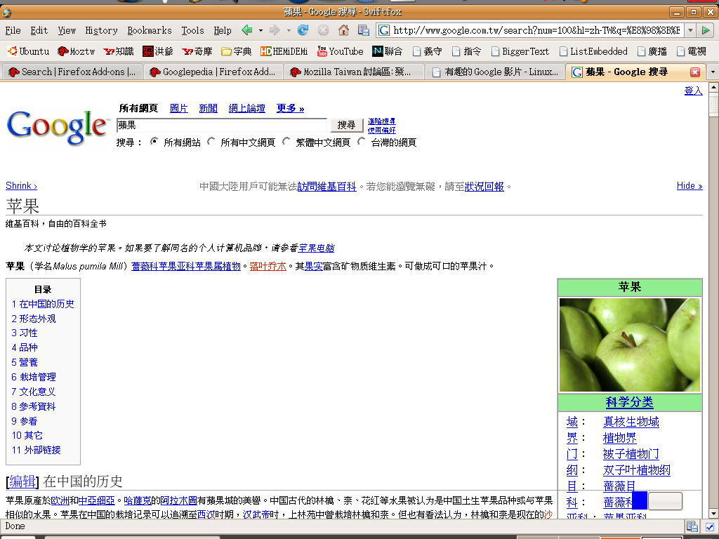 心得:使用Google搜尋時在所搜尋到的網頁目錄右側顯示相關Wikipedia內容