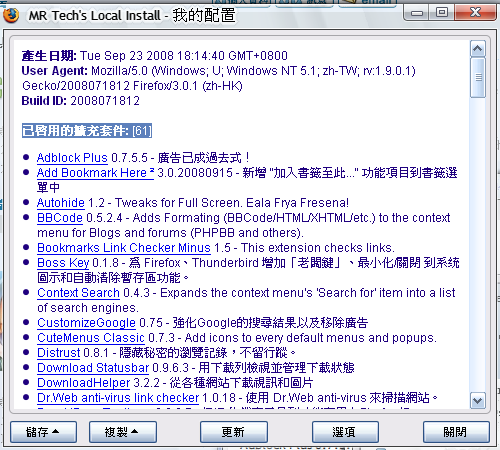 Mozilla/5.0 (Windows; U; Windows NT 5.1; zh-TW; rv:1.9.0.1) Gecko/2008070208 Firefox/3.0.1