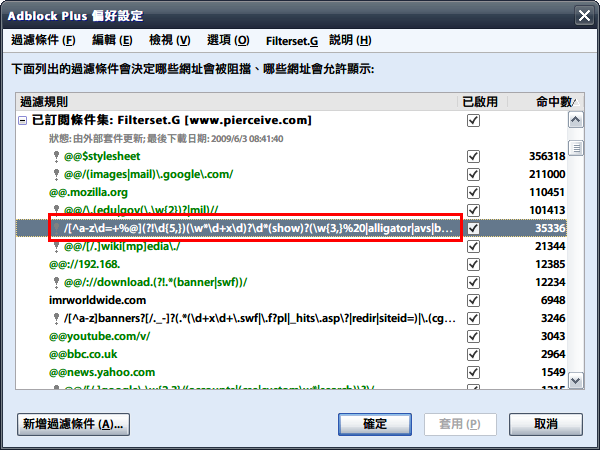 如果確定是 Adblock Plus 的問題,可以比對一下是哪個過濾條件非你所願了。