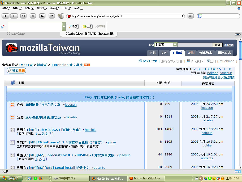 Mozilla/5.0 (Windows; U; Windows NT 5.1; zh-TW; rv:1.7.8) Gecko/20050511 Firefox/1.0.4
