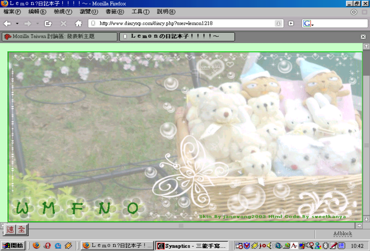 不知為什麼用FF的時候,我的日記竟空白一片,只有背景,而用IE的時候,則看到文字,為什麼會這樣?