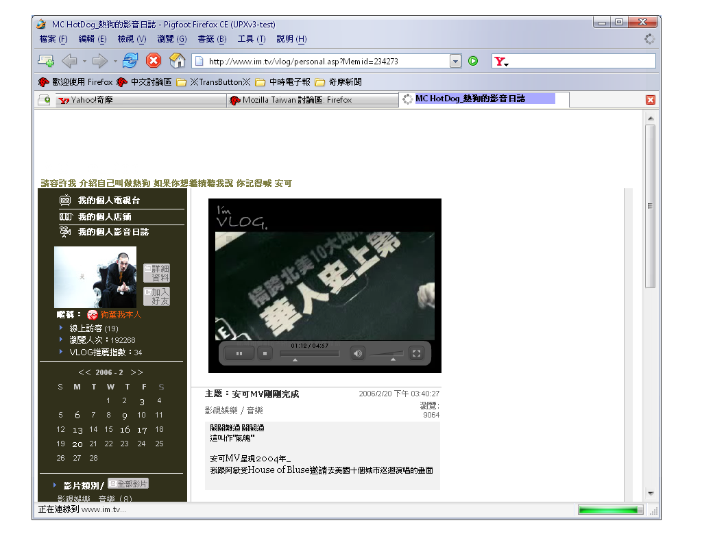 Mozilla/5.0 (Windows; U; Windows NT 5.1; zh-TW; rv:1.8.0.1) Gecko/20060207 Firefox/1.5.0.1 (pigfoot)