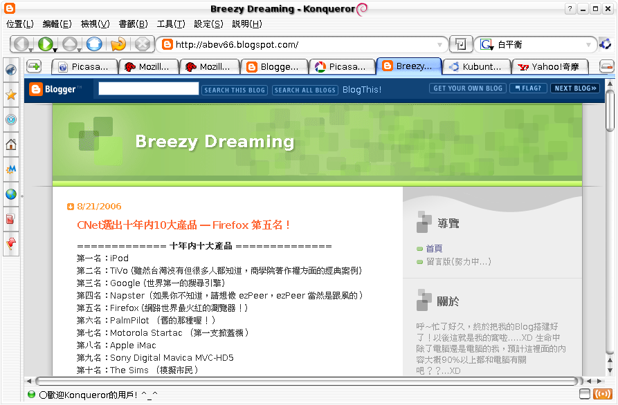 Mozilla/5.0 (compatible; Konqueror/3.5; zh_TW) KHTML/3.5.4 (like Gecko) Kubuntu 6.06 Dapper