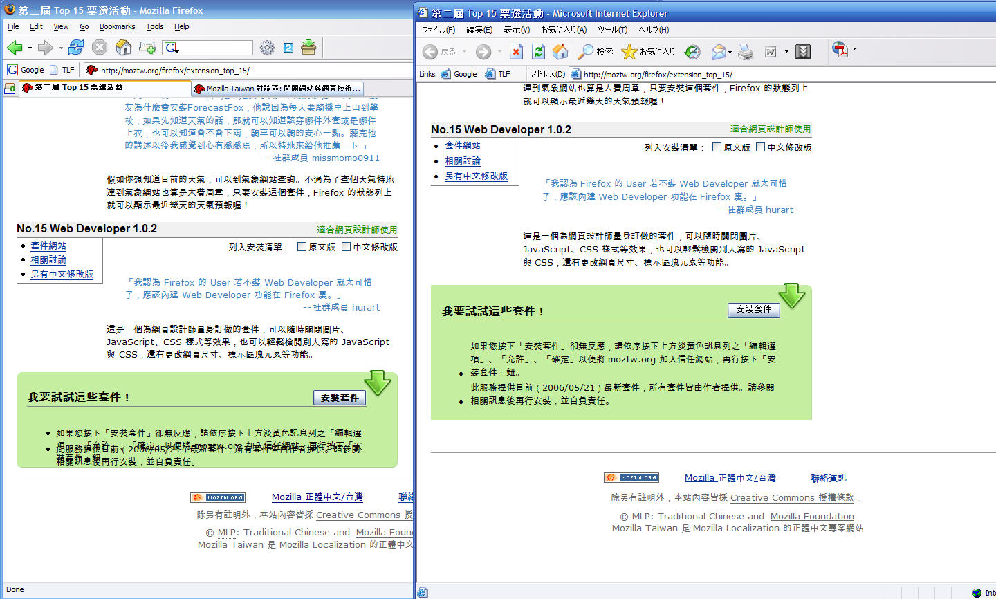 Mozilla/5.0 (Windows; U; Windows NT 5.1; zh-TW; rv:1.8.0.6) Gecko/20060728 Firefox/1.5.0.6