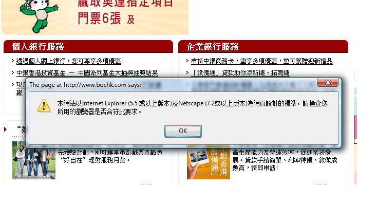 有些網頁會判定瀏覽器,當遇到「不認識」的瀏覽器就會出現這個畫面。所以事實上網頁可能可以正常瀏覽。