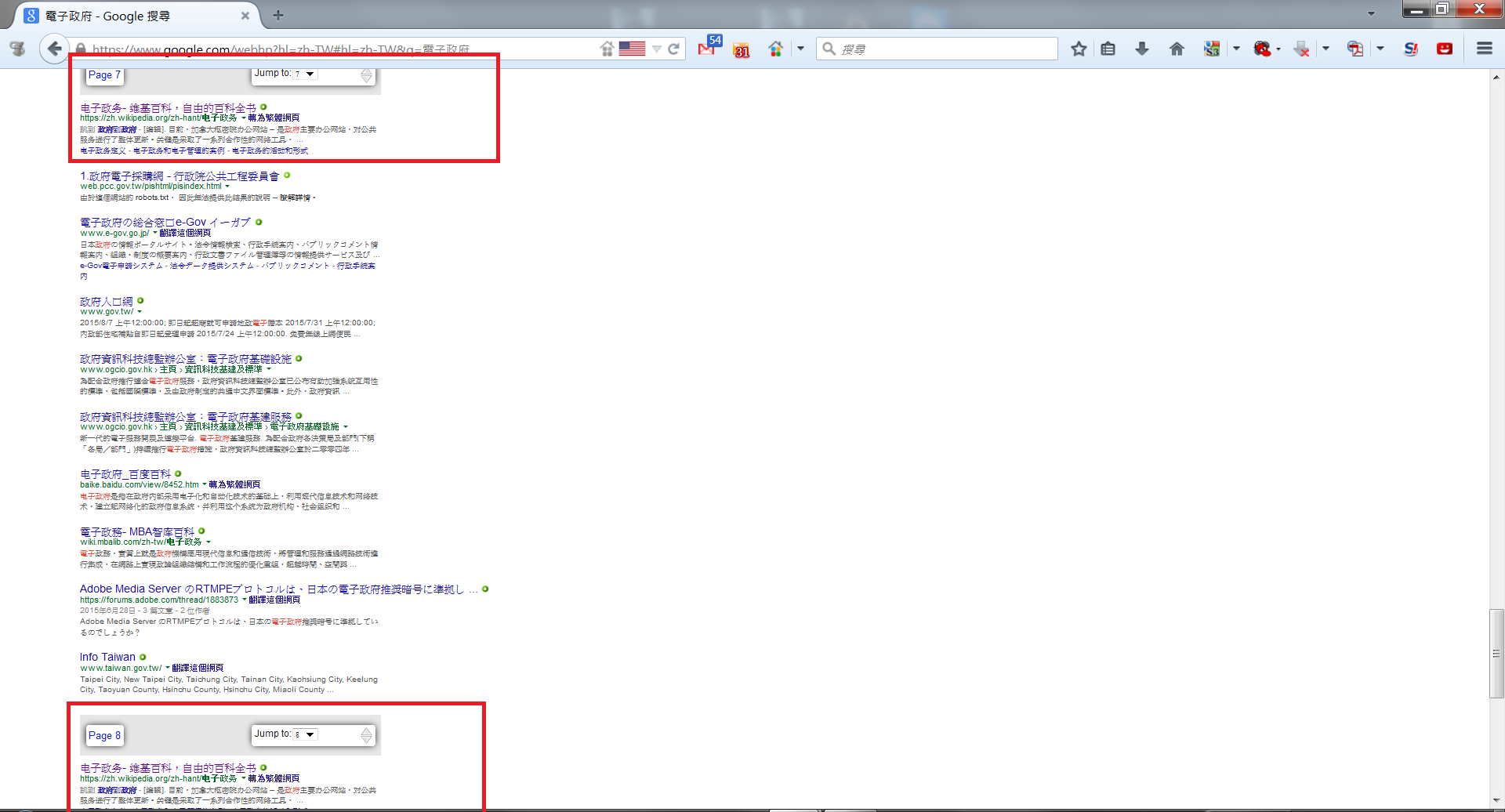 開啟Google搜尋頁面搜尋後, 第一頁沒問題, 拉到頁面底的時候頁面會自動讀取並載入下一頁的搜尋結果(如附圖).
