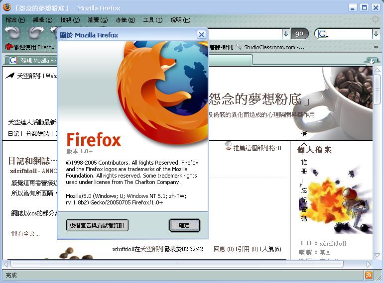 Mozilla/5.0 (Windows; U; Windows NT 5.1; zh-TW; rv:1.8b2) Gecko/20050705 Firefox/1.0+