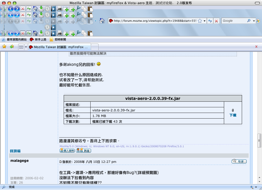 Mozilla/5.0 (Windows; U; Windows NT 6.0; zh-TW; rv:1.9.0.1) Gecko/2008070208 Firefox/3.0.1