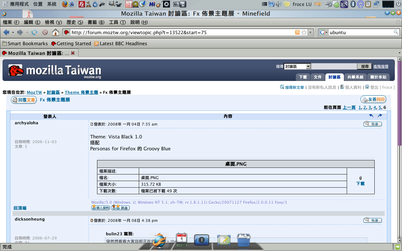 Mozilla/5.0 (Windows; U; Windows NT 5.1; zh-TW; rv:1.8.1.11) Gecko/20071127 Firefox/2.0.0.11