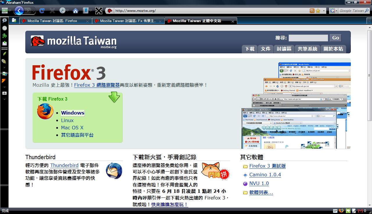 Mozilla/5.0 (Windows; U; Windows NT 6.0; zh-TW; rv:1.9) Gecko/2008052906 Firefox/3.0