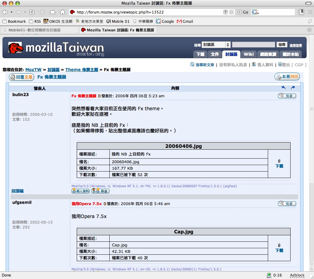Mozilla/5.0 (Windows; U; Windows NT 5.1; zh-TW; rv:1.8.0.1) Gecko/20060111 Firefox/1.5.0.1
