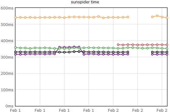 由於spidermonkey裡面JägerMonkey消耗的時間就佔據了一半以上,更是削弱了TraceMonkey的23%優勢