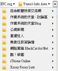 像我有使用書籤工具列,大多是rss而且很多,多到會有">>"這個符號告知說還有其他的rss