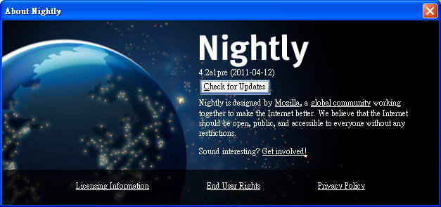 Mozilla/5.0 (Windows NT 5.1; rv:2.2a1pre) Gecko/20110412 Firefox/4.2a1pre