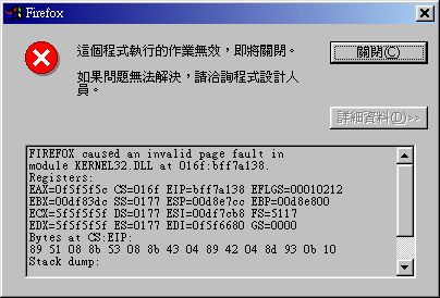 Mozilla/5.0 (Windows; U; Windows NT 5.1; zh-TW; rv:1.8.0.11) Gecko/20070312 Firefox/1.5.0.11