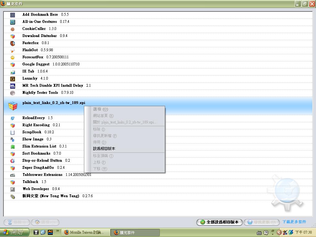 再到設定檔的目錄下(設定檔的目錄在哪裡!?)用筆記本開啟extensions.rdf這個檔案...(強烈要求您在修改前先備份..)