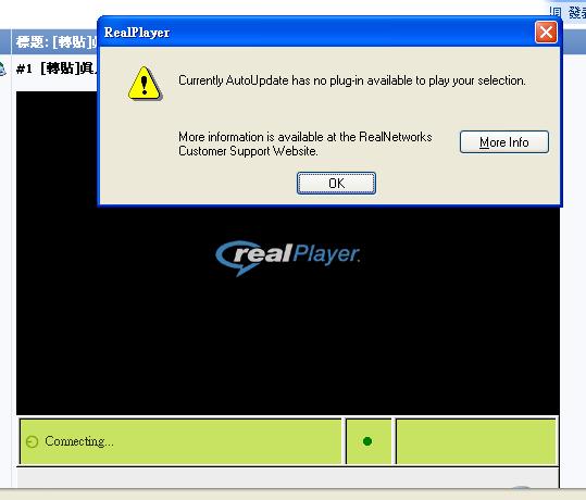realplayer 內嵌視窗,而且出現錯誤訊息,連副檔名是 .wmv