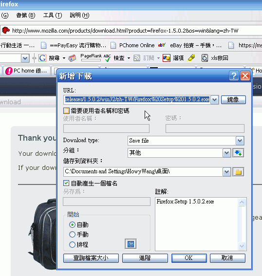 我的續傳軟體,會出現下載視窗,