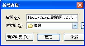 按下「將此頁加入書籤>建立於XXX資料夾>確定」