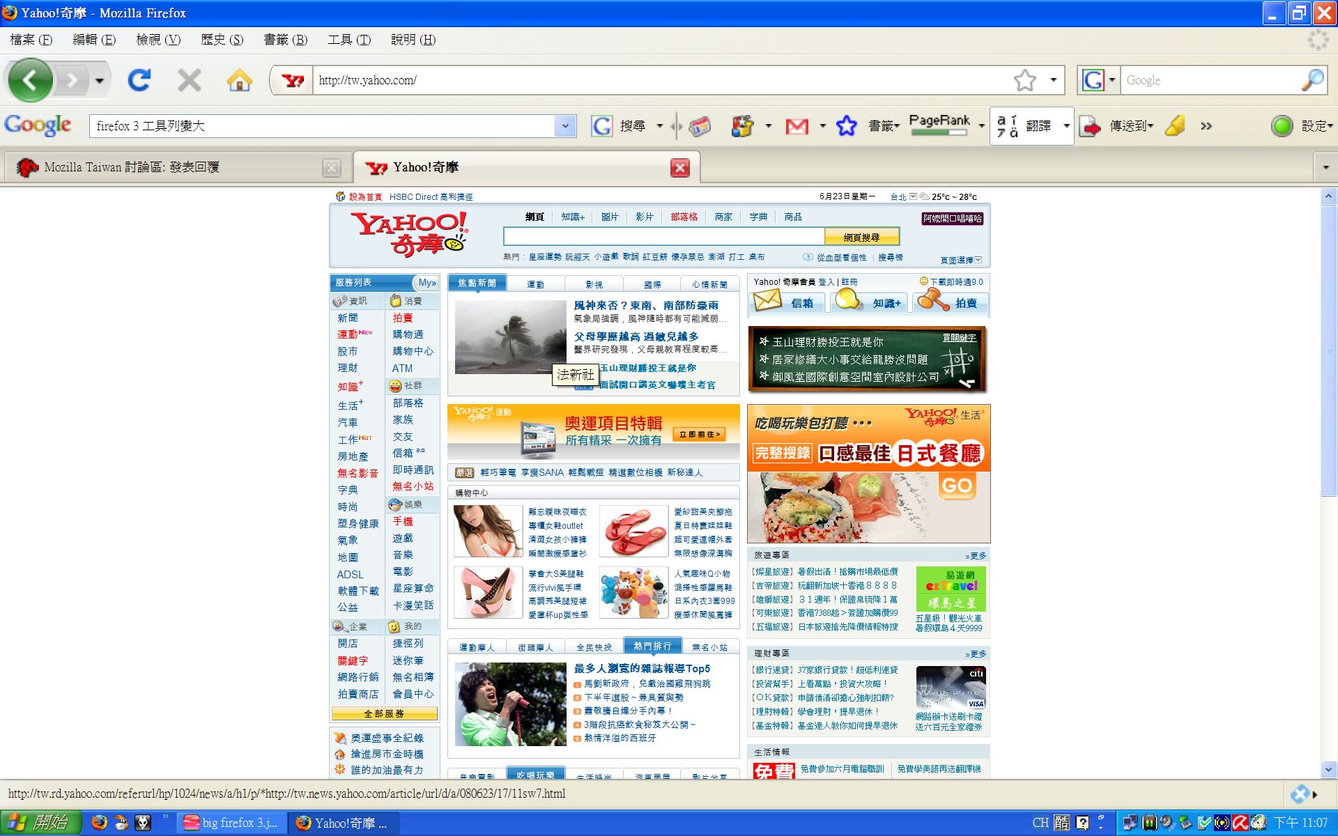 Mozilla/5.0 (Windows; U; Windows NT 5.1; zh-TW; rv:1.8.1.15) Gecko/20080623 Firefox/2.0.0.15