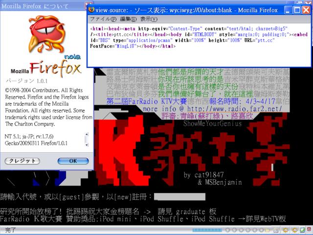 檔案註釋: 在中文 winxp 上 run ja-JP firefox 1.01 連到 ptt.cc,這樣算是在日文環境下執行嗎?