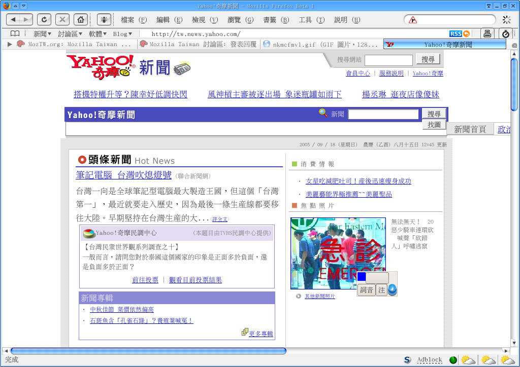 Mozilla/5.0 (Windows; U; Windows NT 5.1; zh-TW; rv:1.8b4) Gecko/20050917 Firefox/1.4