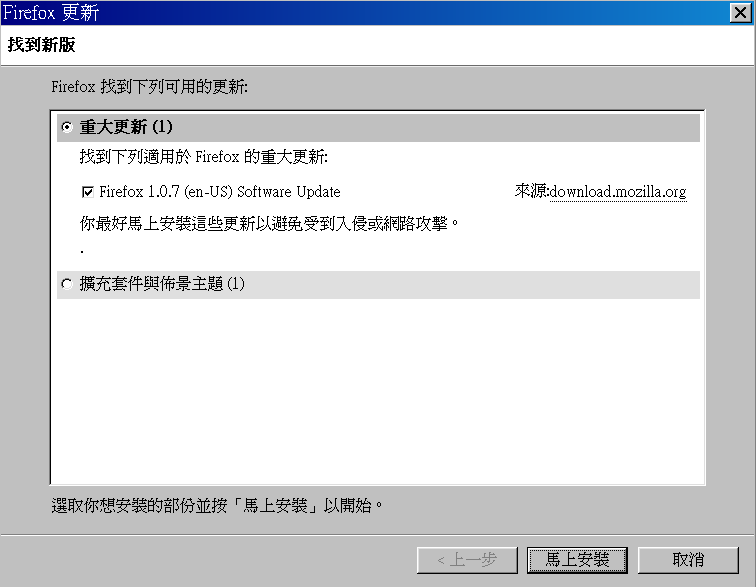 Mozilla/5.0 (Windows; U; Windows NT 5.1; zh-TW; rv:1.7.12) Gecko/20050919 Firefox/1.0.7