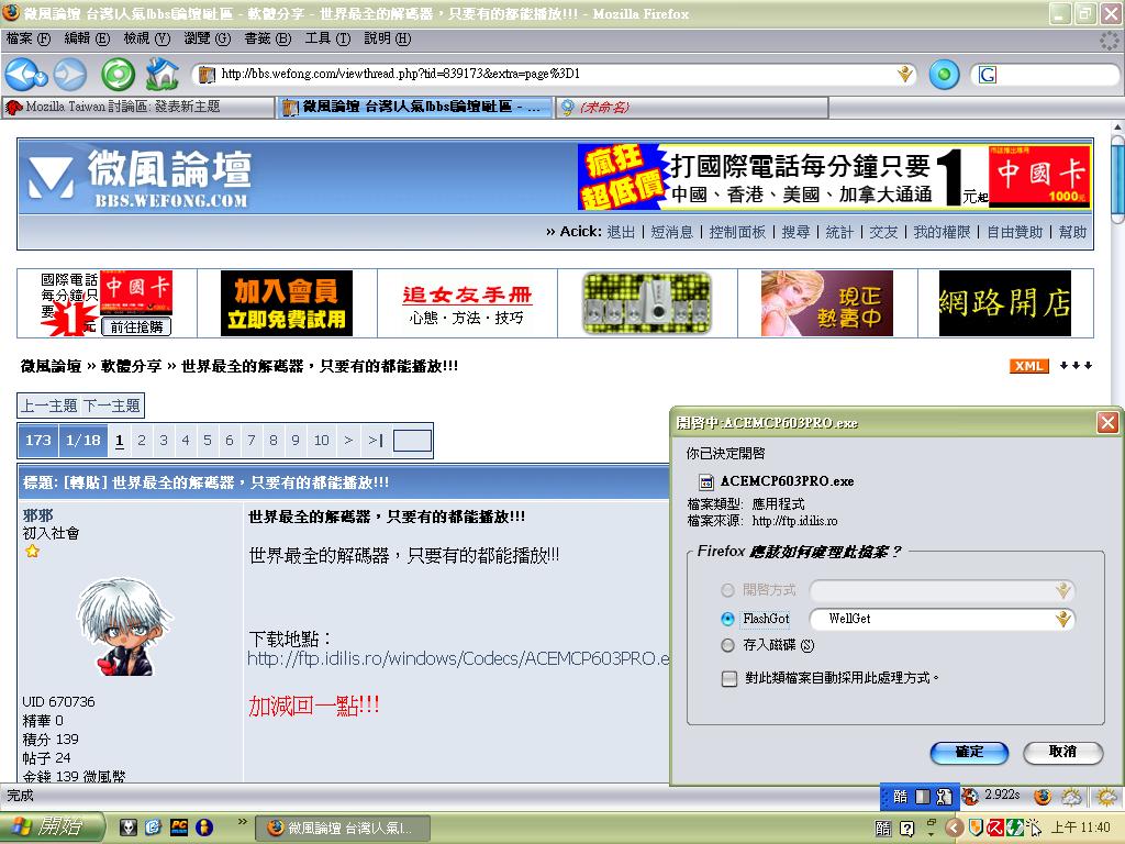 Mozilla/5.0 (Windows; U; Windows NT 5.1; zh-TW; rv:1.8.0.1) Gecko/20060111 Firefox/1.5.0.1