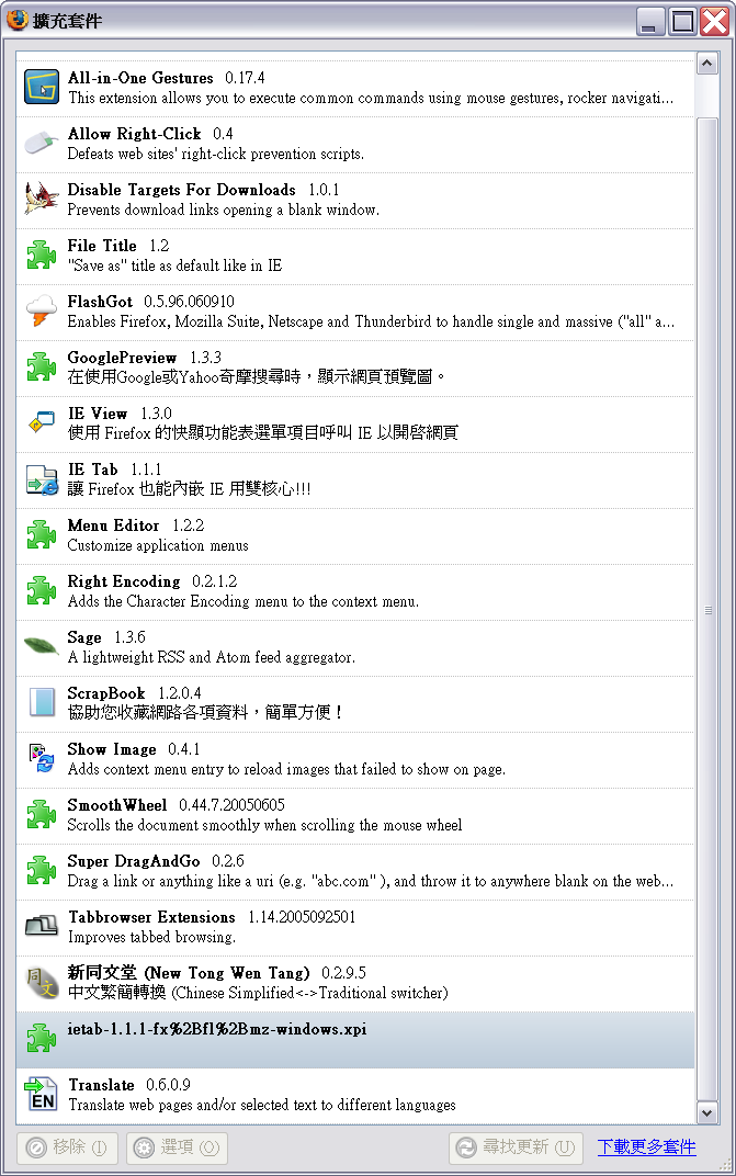 Mozilla/5.0 (Windows; U; Windows NT 5.1; zh-TW; rv:1.8.0.1) Gecko/20060111 Firefox/1.5.0.1