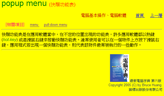 彈出式選單 或 躍出式選單(雖然很怪^_^" 但大多書上都是這麼寫的)