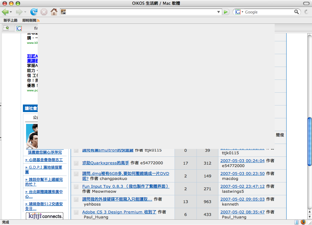 Mozilla/5.0 (Macintosh; U; Intel Mac OS X; zh-TW; rv:1.8.1) Gecko/20061010 Firefox/2.0