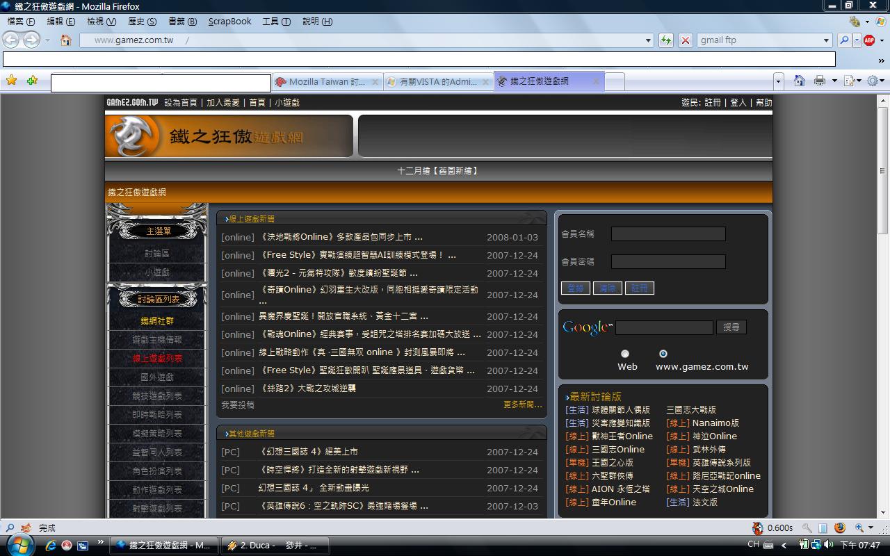Mozilla/5.0 (Windows; U; Windows NT 6.0; zh-TW; rv:1.9b3pre) Gecko/2008010104 Minefield/3.0b3pre