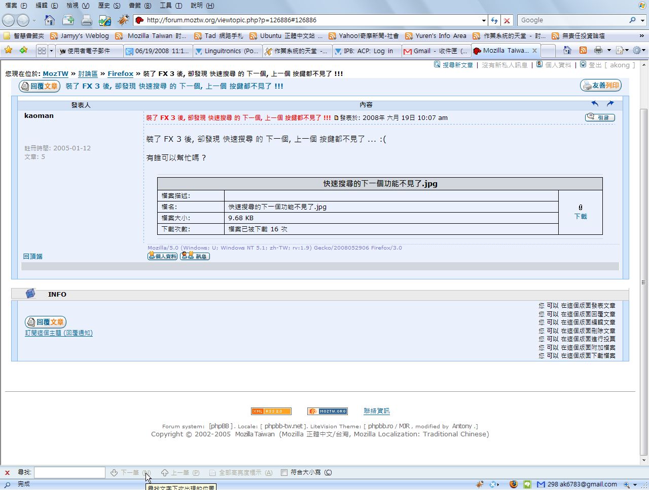 Mozilla/5.0 (Windows; U; Windows NT 5.1; zh-TW; rv:1.9) Gecko/2008052906 Firefox/3.0