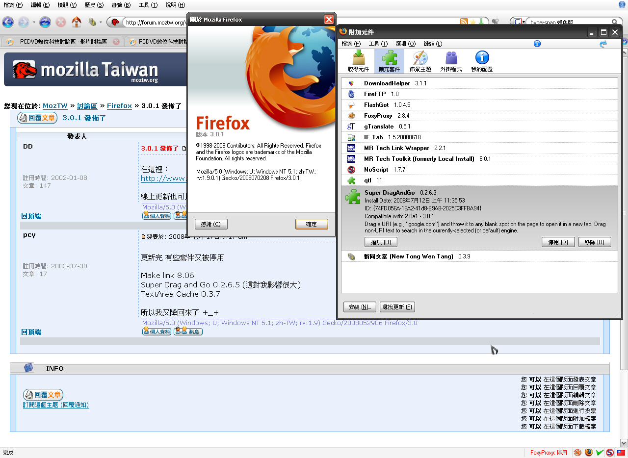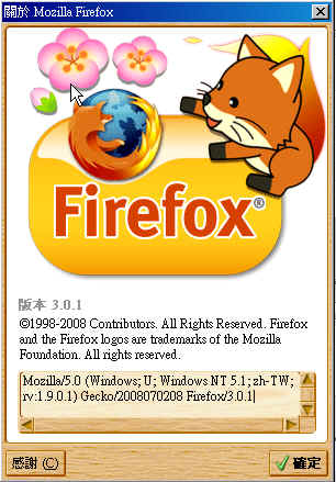 Mozilla/5.0 (Windows; U; Windows NT 5.1; zh-TW; rv:1.9.0.1) Gecko/2008070208 Firefox/3.0.1
