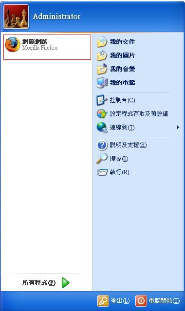 檔案註釋: 開始選單會顯示預設的瀏覽器
