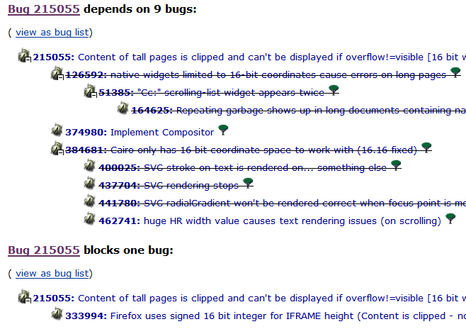 Bug 215055 https://bugzilla.mozilla.org/showdepend ... resolved=0 請教:bugzilla中 depends 和 blocks 有什麼區別?