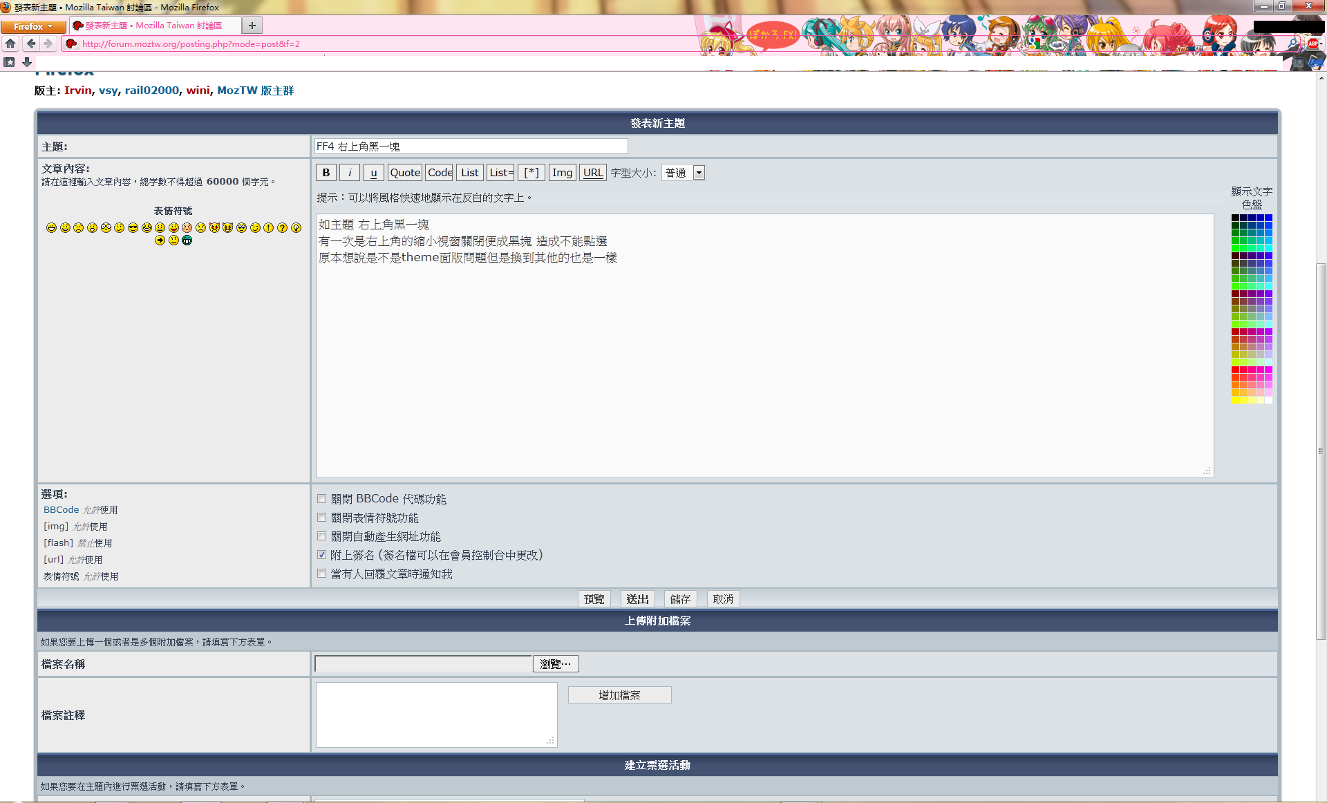 | 您 不能 在這個版面發表主題 您 不能 在這個版面回覆主題 您 不能 在這個版面編輯您的文章 您 不能 在這個版面刪除您的文章 您 不能 在這個版面上傳附加檔案 |