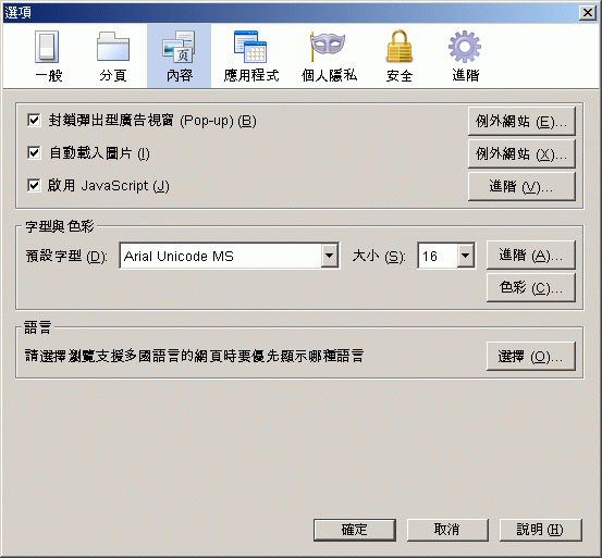 這樣的畫面嗎?如果是請到工具→選項→內容中將【啟用 JavaScript】打勾。