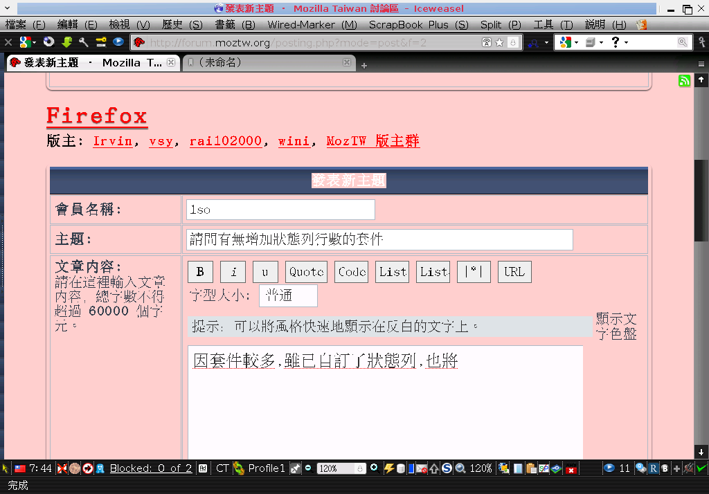 Mozilla/5.0 (X11; U; Linux x86_64; zh-TW; rv:1.9.1.16) Gecko/20110107 Iceweasel/3.5.16 (like Firefox/3.5.16) GTB7.1