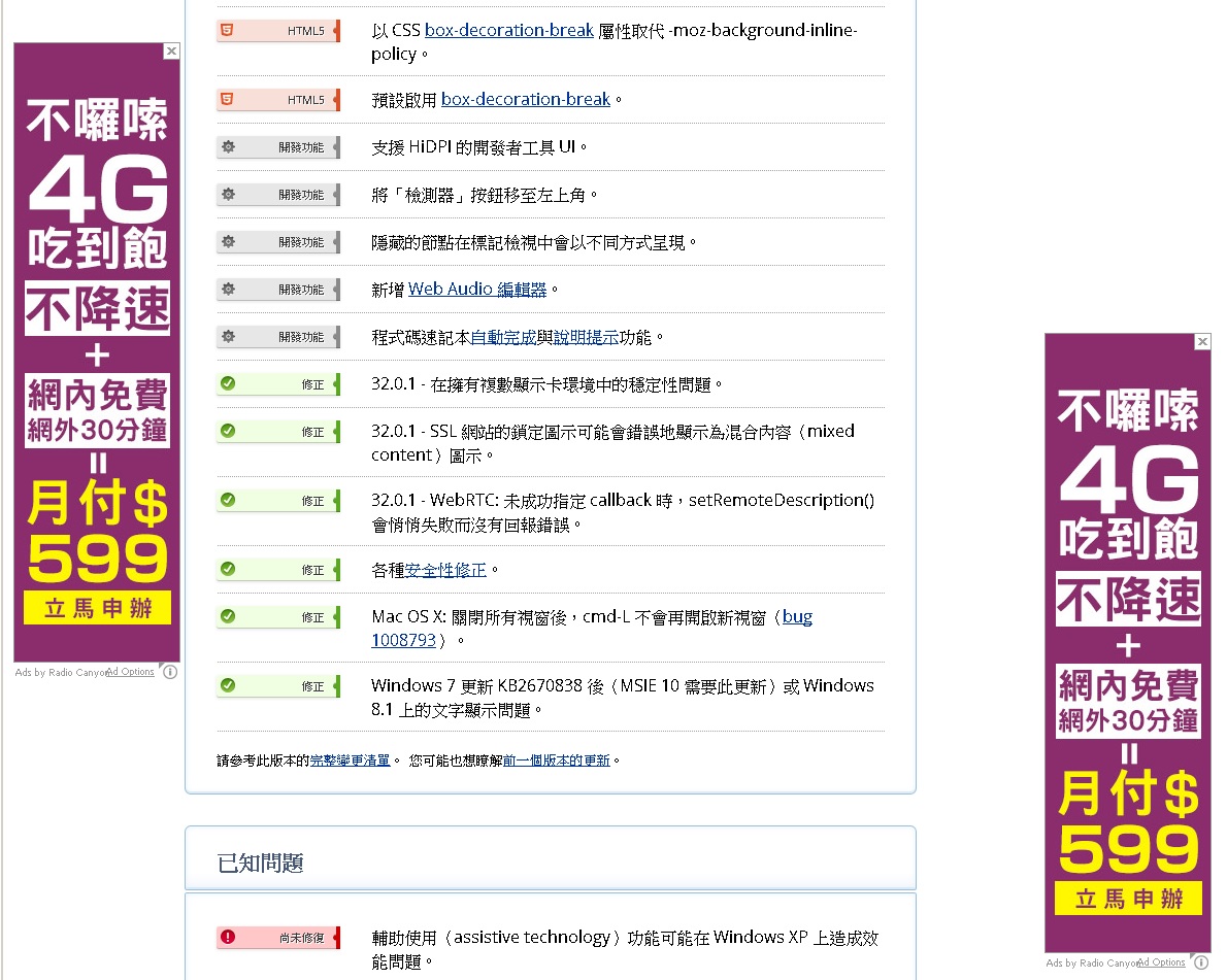 | 更新32.0.2版本後 某些網頁會被插入廣告框 https://forum.moztw.org/viewtopic.php?f=2&t=41302 |