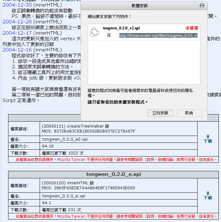 Mozilla/5.0 (Windows; U; Windows NT 5.1; zh-TW; rv:1.7.5) Gecko/20041111 Firefox/1.0 (JTw)