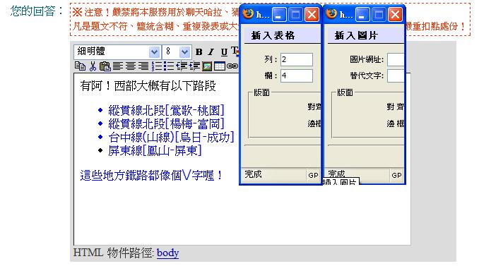 | 您 不能 在這個版面發表主題 您 不能 在這個版面回覆主題 您 不能 在這個版面編輯您的文章 您 不能 在這個版面刪除您的文章 您 不能 在這個版面上傳附加檔案 |