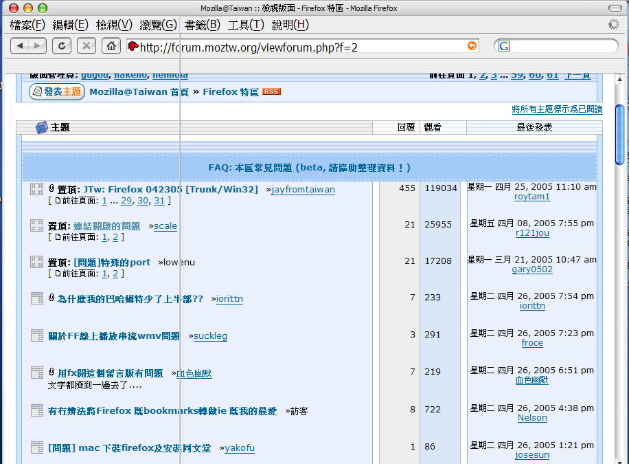 Mozilla/5.0 (Windows; U; Windows NT 5.1; zh-TW; rv:1.7.7) Gecko/20050414 Firefox/1.0.3